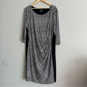 Lauren Ralph Lauren Dress 22W Black White Houndstooth Side Panel Shirred