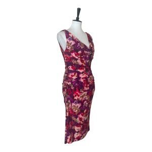 Lauren Ralph Lauren Dress Drape Neck Shirred Link Purple Floral Women’s Size 12