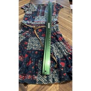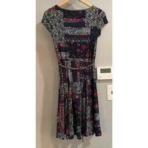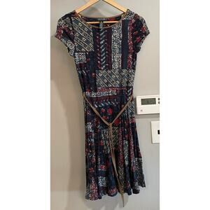 Lauren Ralph Lauren Dress Fit Flare Patchwork Print Waist Tie Womens Small