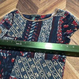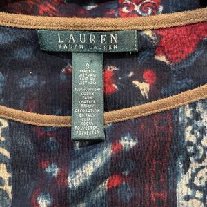 This Lauren Ralph Lauren dress in size Small features a Fit & Flare style with a Patchwork Print design in multicolor. It has Cap Sleeves, a Waist Tie closure, and is made of 100% Cotton material with stretch for comfort. The knee-length dress is perfect for women and is designed with a tie closure for a stylish touch.
