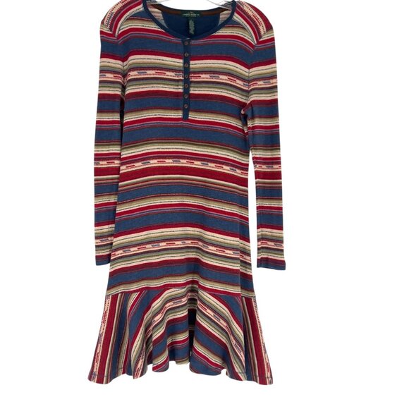 Lauren Ralph Lauren Dress Henley Waffle Knit Aztec Striped Southwestern Dress-L