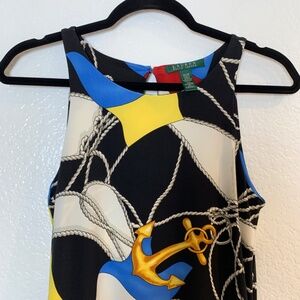 Lauren Ralph Lauren Dress Medium Nautical Flag & Rope Print Preppy Beachy