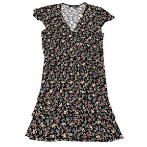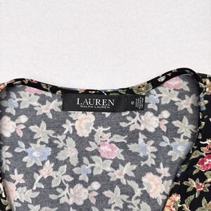 Lauren Ralph Lauren Dress Size 12 Black Floral Tiered Faux Wrap Cocktail Flutter