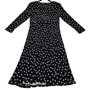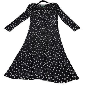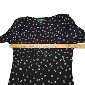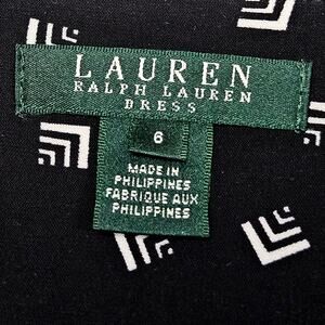 Lauren Ralph Lauren Dress Size 6 Black White Geo Print Long Sleeve Midi Y2K