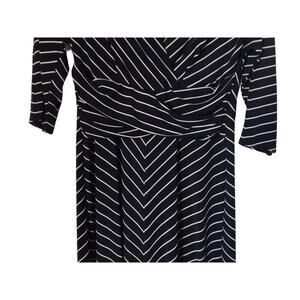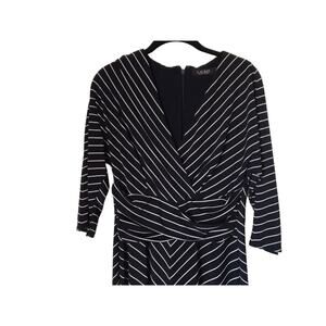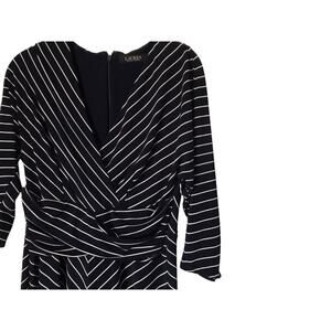 Lauren Ralph Lauren Dress Size 6 Blue White Striped 3/4 Sleeve V-Neck Faux Wrap