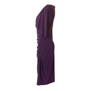 Lauren Ralph Lauren Dress Size 8 Purple Faux Wrap Ruched Short Sleeve V Neck