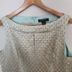 Lauren Ralph Lauren Dress Sz 16 Womens Blue Gold Brocade Metallic Party Cocktail