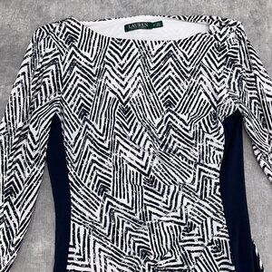 Lauren Ralph Lauren Dress Women 10 Black White Chevron Sheath Colorblock Stretch