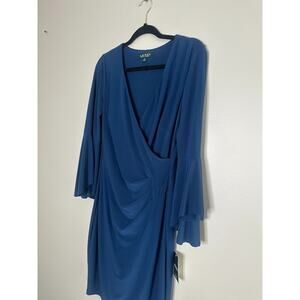 Lauren Ralph Lauren Dress Womens 8 Floral Bell Sleeve Blue Stretch Career Wrap