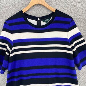 Lauren Ralph Lauren Dress Womens Medium Blue Striped Shift Short Sleeve Stretch