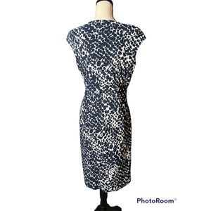 Lauren Ralph Lauren Dress in Black White Print Faux Wrap Side Gathered Size 8