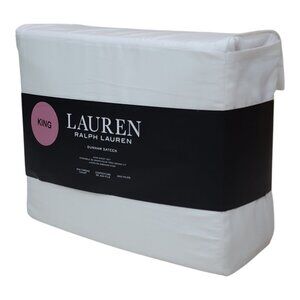 Lauren Ralph Lauren Dunham Sateen KIng White Sheet Set 300 Thread Count Cotton