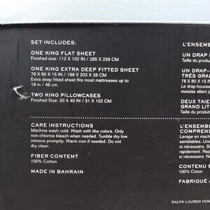 Indulge in luxurious comfort with the Lauren Ralph Lauren Dunham Sateen King Sheet Set. Crafted from 100% cotton with a 300 thread count, these sheets provide a soft and smooth feel for a restful night's sleep. The elegant celestial blue color adds a touch of sophistication to any bedroom decor.