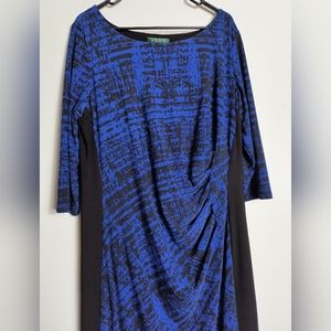 Lauren Ralph Lauren Elbow Sleeve Sheath Dress Women's Size 16W Blue Casual