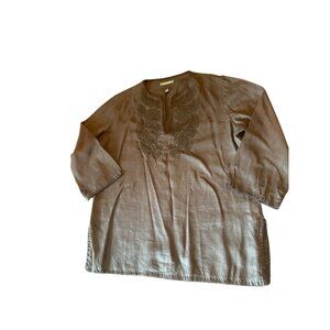 Lauren Ralph Lauren Embroidered Linen Tunic Top XL Black Lagenlook Boho