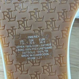 Padded insole. Teardrop-cushioned heel with a foil-printed "Lauren Ralph Lauren" logo.