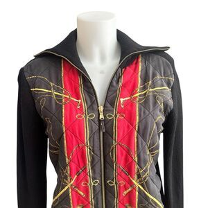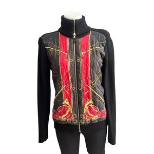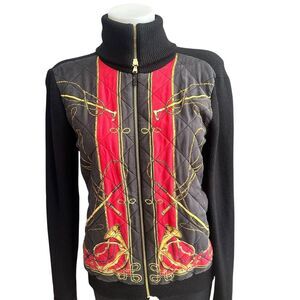 Lauren Ralph Lauren Equestrian Bishop Zip Knit Sweater Silk Wool Blend sz Large