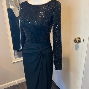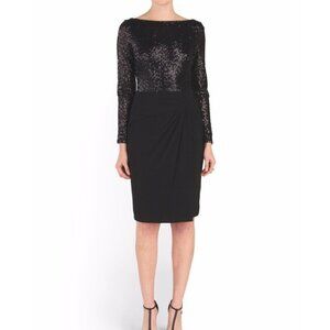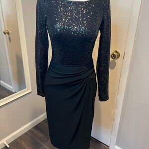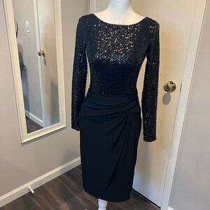 Lauren Ralph Lauren Evening Black Sequined Long Sleeve Cocktail Dress, Size 2