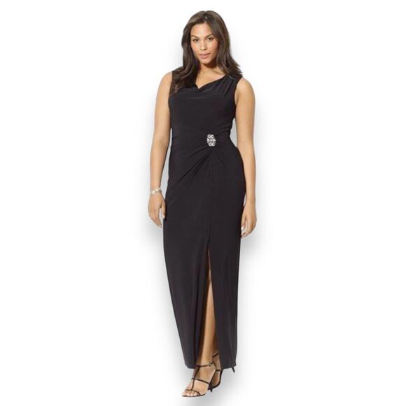 Lauren Ralph Lauren Evening Size 6 Formal Waist Broach Sleeveless Black Dress