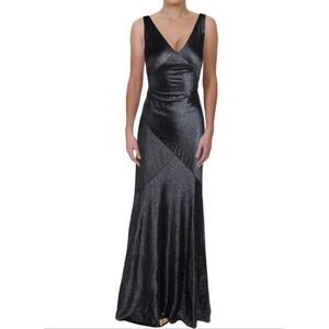 Lauren Ralph Lauren Evening Womens Kendalyn Metallic Gown 14 Navy Maxi Dress