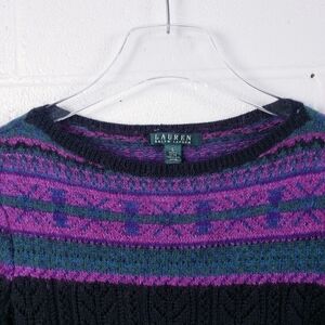 Lauren Ralph Lauren Fair Isle Sweater Mohair Wool Women’s Small Black Purple
