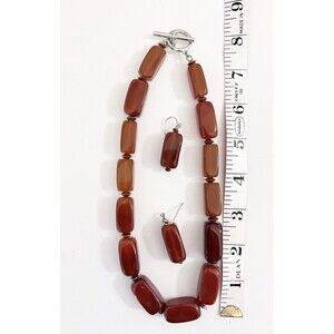 Lauren Ralph Lauren Faux Carnelian Large Bead Chunky Necklace And Earrings