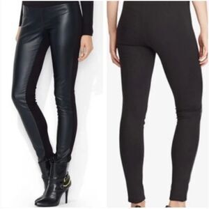 Lauren Ralph Lauren Faux Leather Front Leggings Ponte Knit Black Plus Size 16W