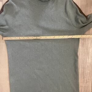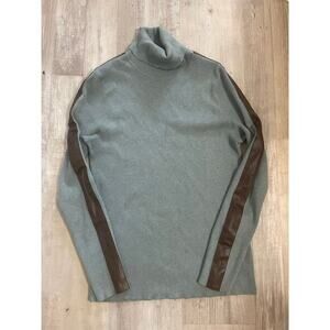 Lauren Ralph Lauren Faux Leather Trim Turtleneck Sweater XL Teal Heather/brown