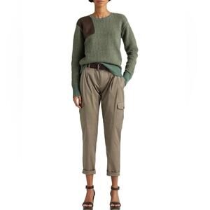 Inspired by the rich and authentic heritage of Lauren Ralph Lauren, this cozy wool-blend sweater is elevated by eye-catching color-blocking and luxurious faux-leather patches at the right shoulder and the elbows.
