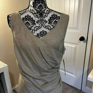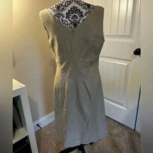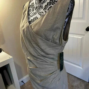 Herringbone patterned linen Lauren Ralph Lauren faux wrap dress, pleated ruching detail, hidden back zipper, fully lined, NWT, smoke free home.