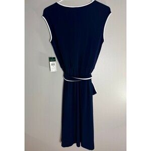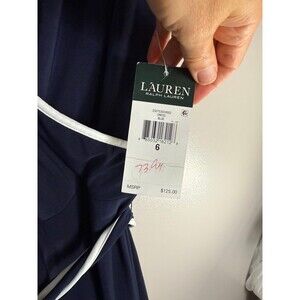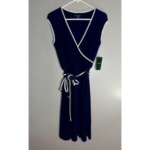 Lauren Ralph Lauren Faux Wrap Dress - Navy with white trim size 6 new with tags. This faux wrap dress has a belt and a v-neck.