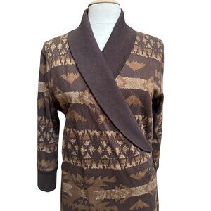 Lauren Ralph Lauren Faux Wrap Sweater Dress Brown Southwest Western Cowgirl Sz L
