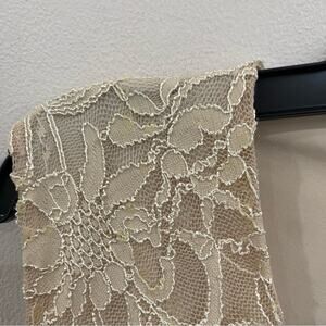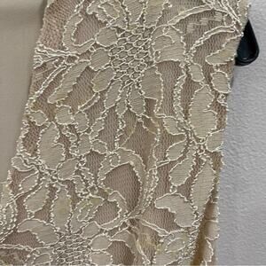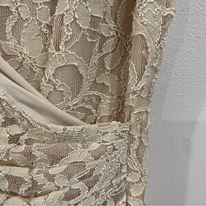 Lauren Ralph Lauren stunning creamy gold cocktail dress. Lace floral overaly with clear shimmering sequin.