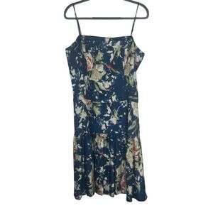 Lauren Ralph Lauren Floral Linen Blend Midi Blue Multi Dress Size 14