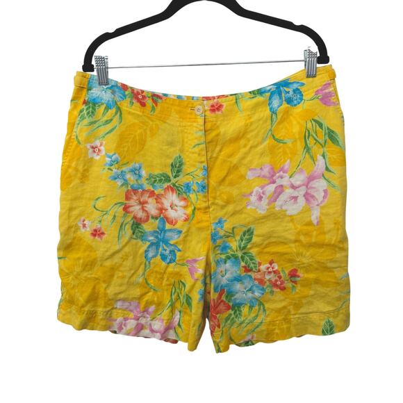 Lauren Ralph Lauren Floral Linen Shorts High Rise 6" Inseam Yellow 16