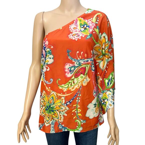 Lauren Ralph Lauren Floral One Shoulder Top Medium Flowy Vacation Colorful