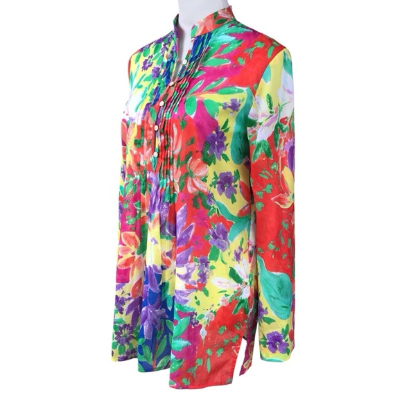 Lauren Ralph Lauren Floral Pin Tuck Cotton Tunic Blouse Size SP