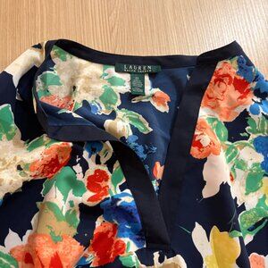 Pretty Blouse from Lauren Ralph Lauren Navy Blue with Floral Print Size 2X Long Sleeve