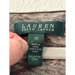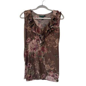 Lauren Ralph Lauren Floral Ruffle Sleeveless Top 1X Cotton Brown & Pink