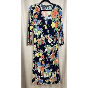 Lauren Ralph Lauren Floral Sheath Dress Midi V Neck Ruched Waist Women’s Sz XL