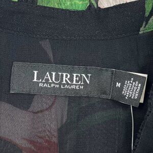 Lauren Ralph Lauren Flutter Sleeve Blouse Floral Tropical Tie Neck Size Medium