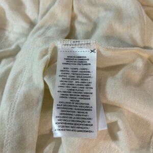 DESCRIPTION Lauren Ralph Lauren peasant top lightweight linen/viscose knit fabric in Winter Cream created for your casual look. Gathered, tasseled tie split neckline, with a short flutter sleeve and a relaxed gathered fit.