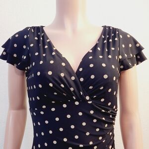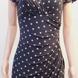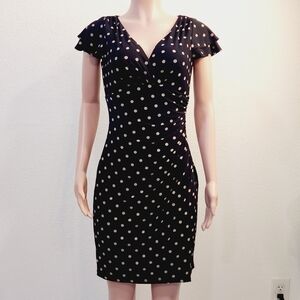 Lauren Ralph Lauren Flutter Sleeve Sheath Dress Black & Tan Polka Dots Size: 8P