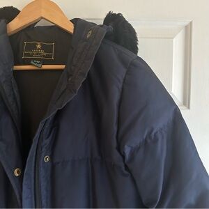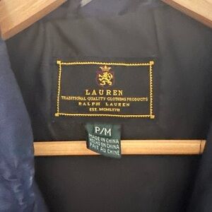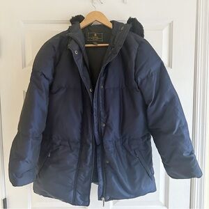 Vintage Y2K Lauren Ralph Lauren Down Feather Puffer Coat Jacket. Navy blue. Removable fur trim hood. Full functional zipper and pockets.
