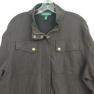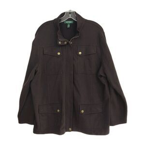 Lauren Ralph Lauren Full-Zip Mock Neck Women's Jacket, Size 2, Chocolate Brown