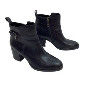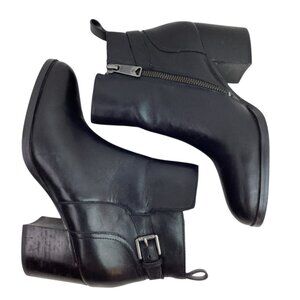 Lauren Ralph Lauren Genna Leather Ankle Boots Womens 7B Black Side Zipper & Buck
