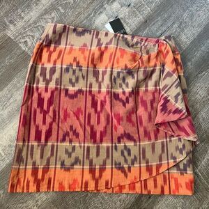 Lauren Ralph Lauren Geometric Motif Cotton Linen Wrap Skirt-Size 14