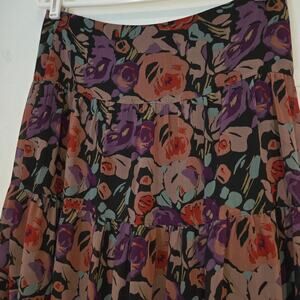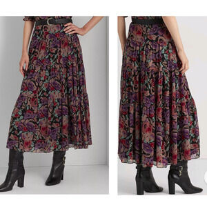 Lauren Ralph Lauren Georgette Dark Floral Print Flowy Tiered Maxi Skirt -Size 10