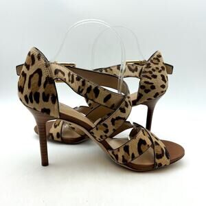 Lauren Ralph Lauren Gisella Haircalf Heel Sandals US 9.5 B Cheetah Leather NWOB