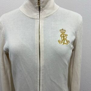 Lauren Ralph Lauren Gold Crest Creme Ribbed Knit Sweater Size Large